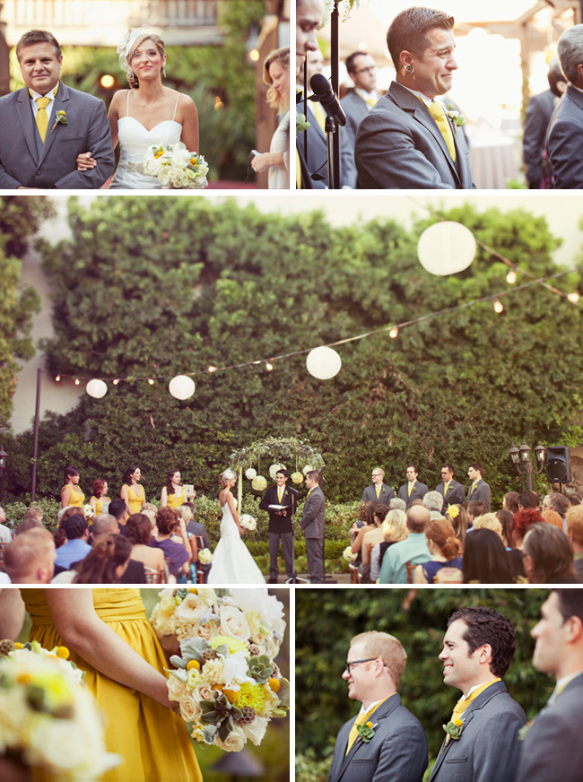 Comments from the bride: “We wanted our wedding to emulate who we are. As a little girl, I knew I always wanted an outdoor, summer garden wedding and that’s exactly what we did! I love the sunshine and warm weather so when it came to choosing my colors, I didn’t think twice about choosing lemon yellow because it always instantly makes me smile.” “We love both modern and vintage, so it was creating a balance of both those elements we used to incorporate into our special day. We wanted our wedding to be simple & fresh, but also intimate & timeless. It was important to us our guests felt like they are a huge part of who we are, and wanted them to enjoy celebrating such a special day with us. Most of our wedding was DIY, so I had fun looking on Etsy & wedding blogs for some ideas and then made them personal to us. I had a lot of ideas of things I definitely wanted to do, so with a lot of time and planning we were completely able to make the day ours. It was really fun to be so involved in every element we chose to share with our guests.”What are a few of the best moments of your Wedding Day?