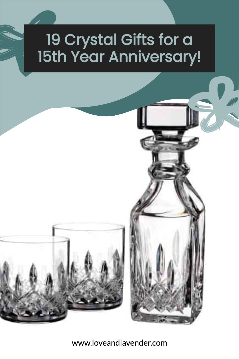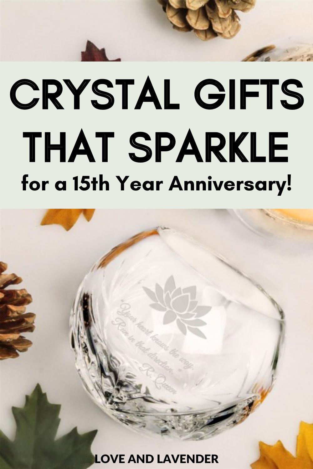 The traditional gift for a 15th wedding anniversary is crystal, which symbolises the clear and sparkling love the two of you have for each other. As you can see it in my go-to book – Blue Book of Social Usage by Emily Post – crystal is one of those gift ideas that was already completely cemented in the mind of society by the time the book was written in the early 20th century. Its the traditional gift choice in both the US and the UK, and I just love the inventive options with this one.