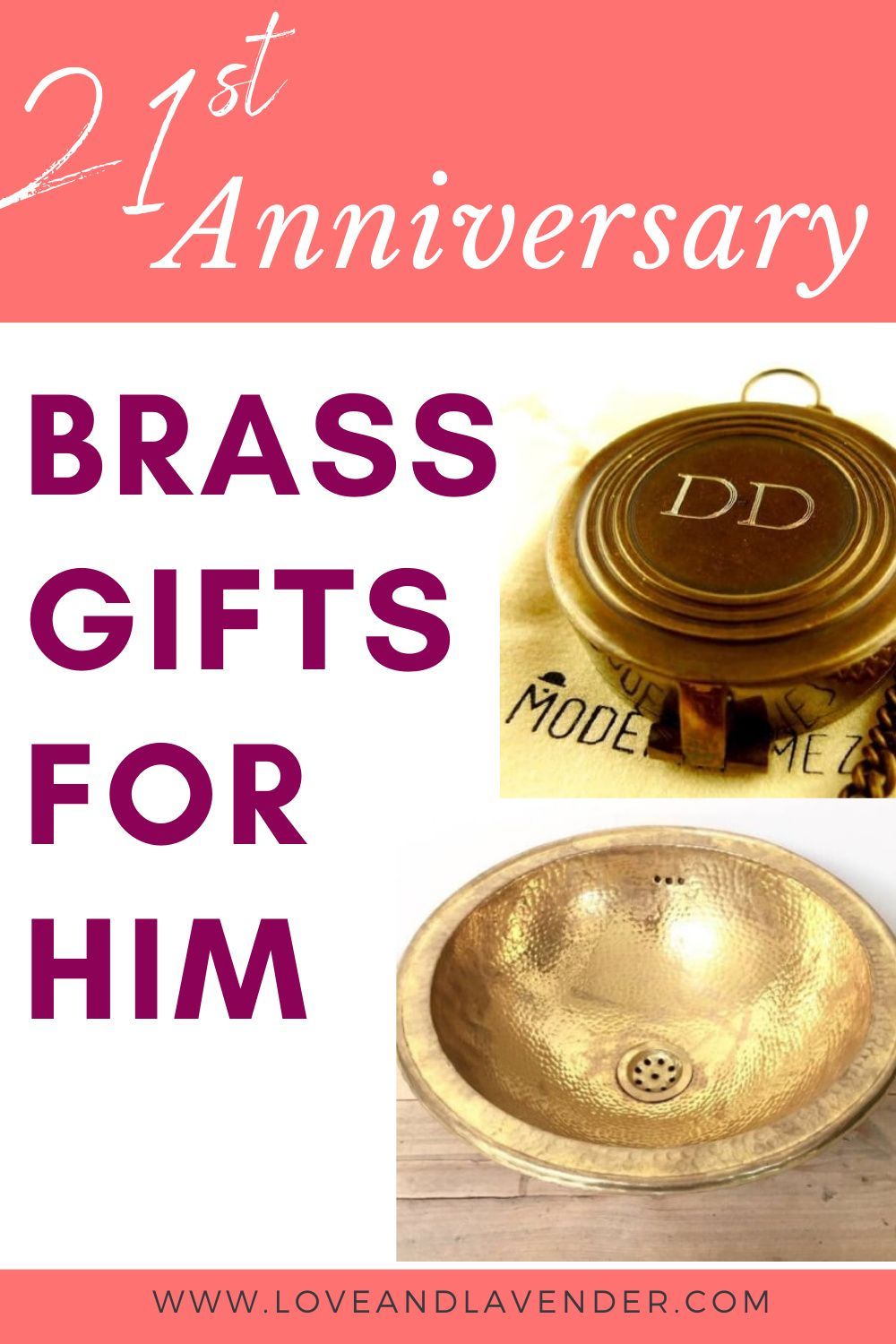 For a 21st wedding anniversary, it is now seen as customary to give brass, nickel, iris, or iolite. Notably, there is no ‘traditional’ 21st anniversary gift, but brass and nickel are considered the modern options.