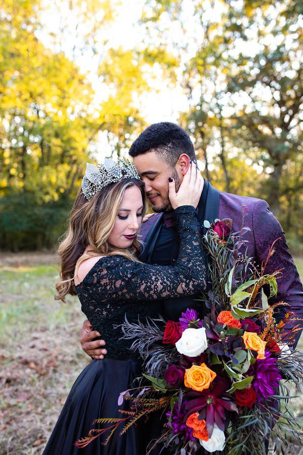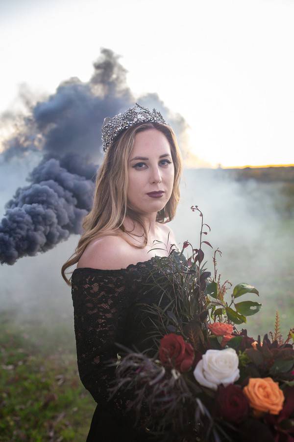 The color black symbolizes many different things, from mystery and death to allure and elegance. However, a black wedding dress doesn’t have to symbolize anything! You can wear this gorgeous color if you want a non-traditional, edgy dress or if you simply like the color. It’s also popular for brides with a specific theme, such as steampunk or Halloween.
