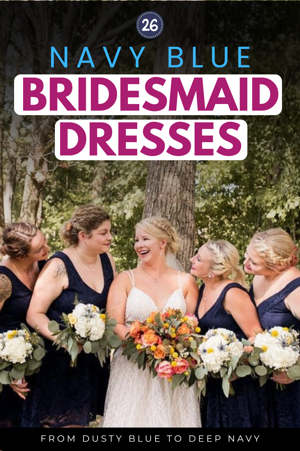 Navy blue has stayed at the top of the bridesmaid dress conversation for a reason — it’s deep enough to