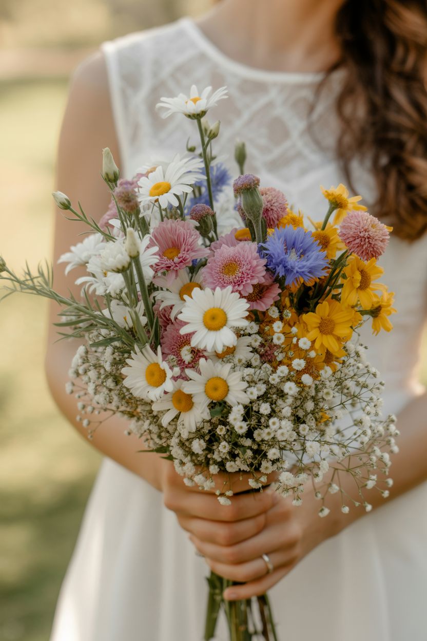 There’s something irresistible about a wildflower bouquet. It looks like you wandered through a meadow on your wedding morning and