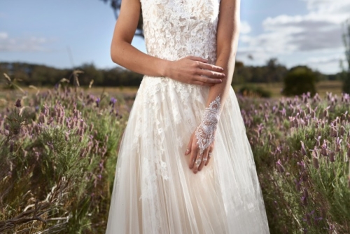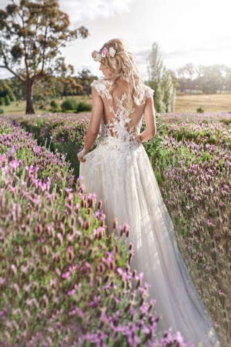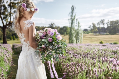Stylist Remarks: “Together with industry experts, renowned stylists and wedding dress designs by Maggie Sottero and Nicole Spose, a talented team brought to life a beautifully styled inspiration shoot set amongst alluring lavender fields. This luxe boho meets a soft lavender field feature promises to take your breath away with its magical and whimsical influence.