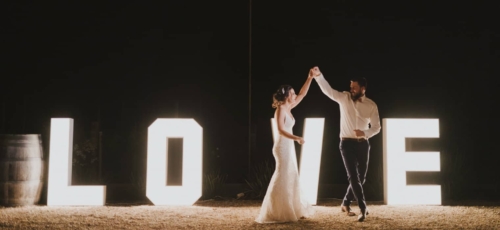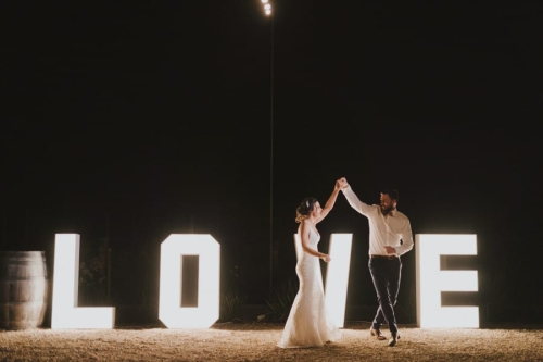 The reception was just amazing. It has all French glass doors facing the west, so you can watch the sunset. The courtyard outside was filled with fairy lights and a big Love sign.