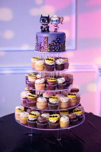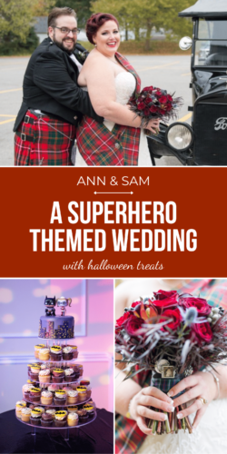 Photographer’s Comments: “Ann and Sam did the most perfect job putting touches of their interests and personalities into every aspect of their Halloween and Superhero themed wedding day. From the custom made black bridesmaid dresses made by the bride’s mom, to the superhero undershirts, and even to a Batman symbol as a spot light for their first dance – the day could not have come together more perfectly on their wedding day!”
