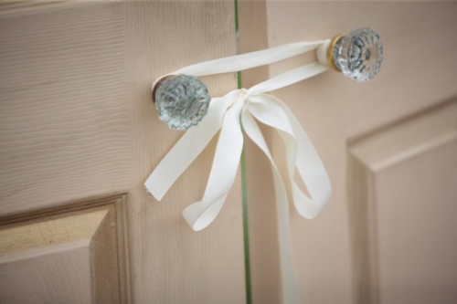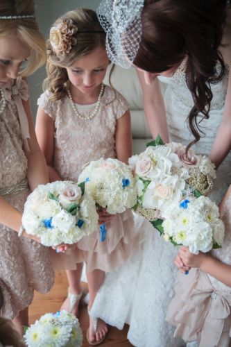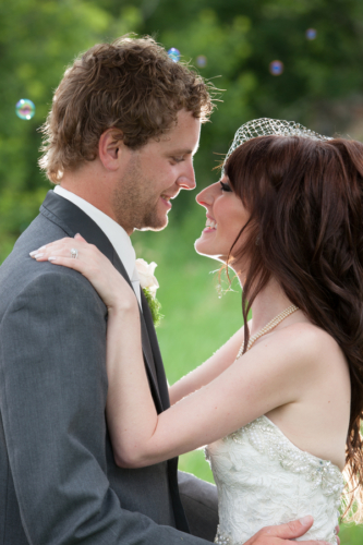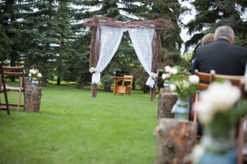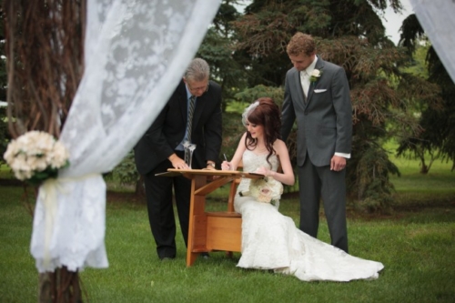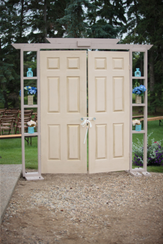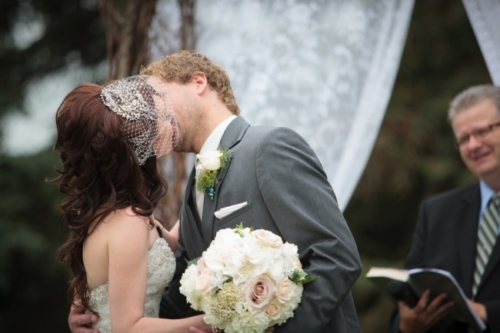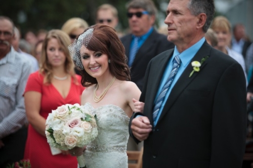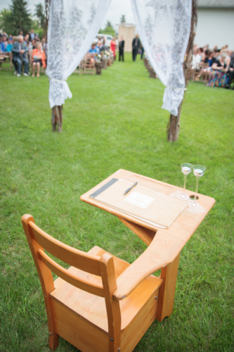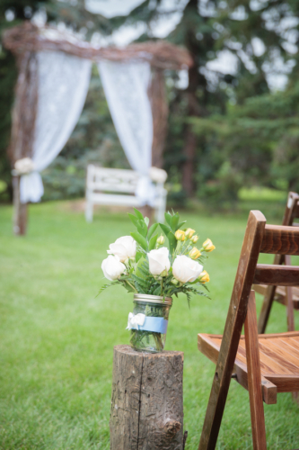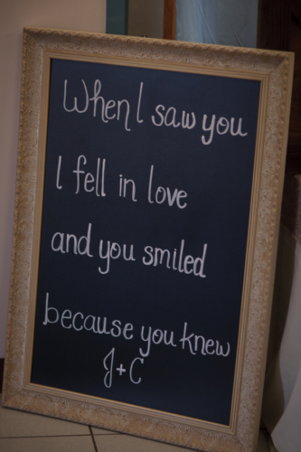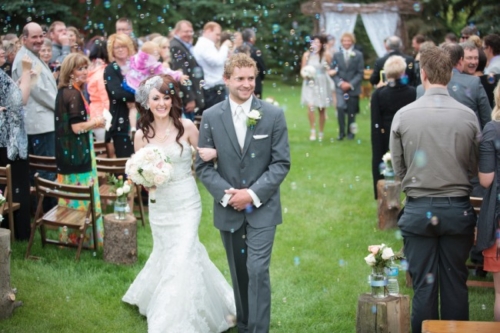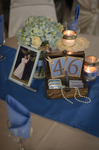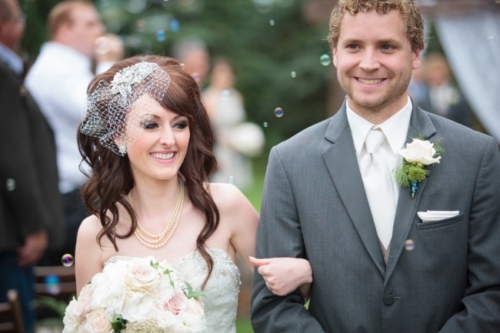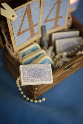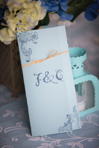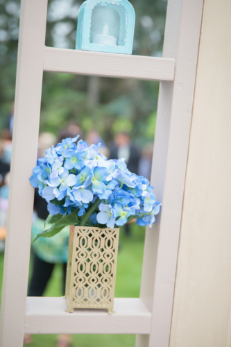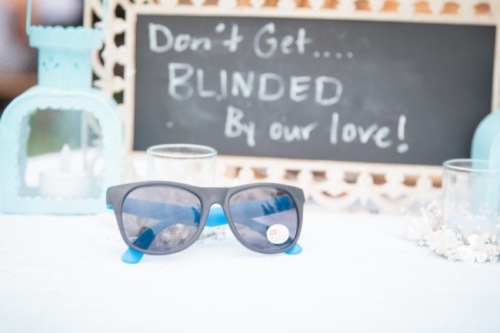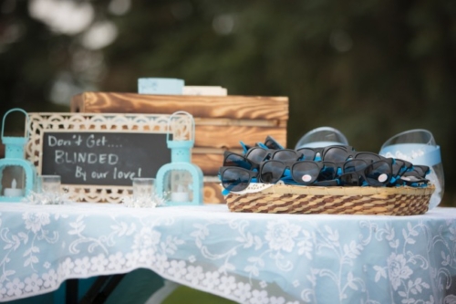Today’s elegant backyard wedding is a vintage inspired, backyard wedding with lavish details.  An outside wedding meant that guests were offered sun glasses by a sign that said, “Don’t get blinded by our love.”