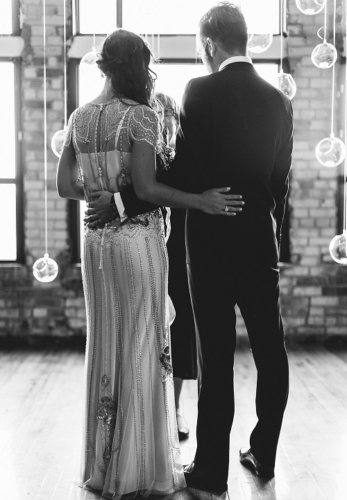 “Huy and Graham’s warehouse wedding was glam to the max with a chic black, white, and metallic palette. Blue Lavender Events created a sophisticated scene in The Burroughes Building with black linens, white orchids, and gold elements, all of which paired beautifully with Huy’s glitzy Jenny Packham gown.