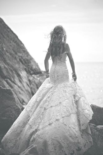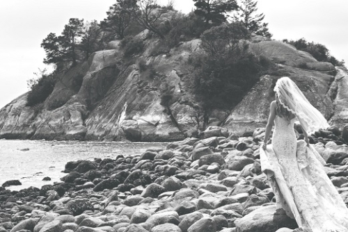 Having lived in this area of the world for many years, I sense the black and white photo of the bride traversing the rocky shoreline encompasses the emotion of her day.
