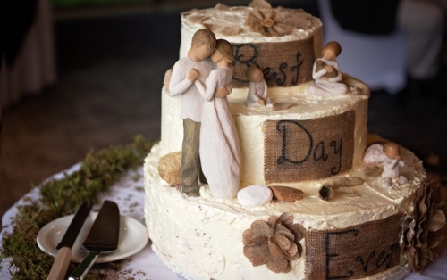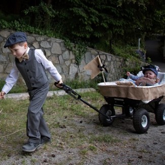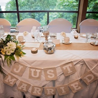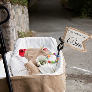 - Burlap: burlap bow ties, a baby in a burlap lined wagon, and burlap cutlery holders … one wonders if too much burlap was used throughout the decor. We don’t think so.