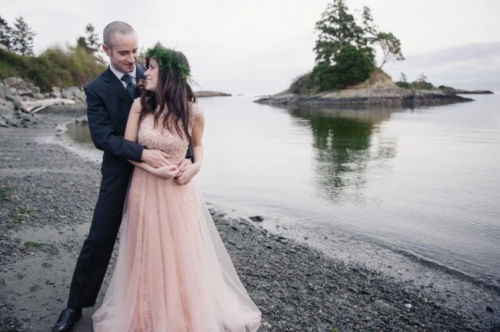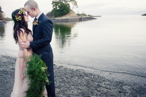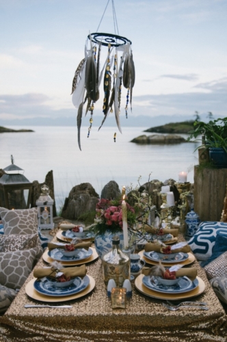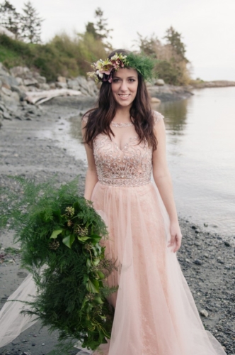Photographer’s Comments: “There is no short of beauty on Vancouver Island, and local weddings are often inspired by the thick lush forests and the ocean side shores. This particular photo shoot featured both inspirations with lush greens, accents of ocean blues, and locally grown flora. We wanted to jazz up the boho theme and introduced feather accents, mixed in with gold touches anywhere we could.”