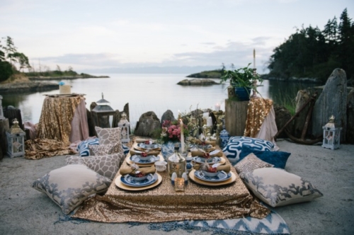 Maybe I am a little bit bias because I live on the West Coast, but this styled shoot has fabulous written all over it! It may be the peacefulness of the water, the scenic island views, or the combination of glamorous textures among the rock landscape that creates an extraordinary styled shoot.