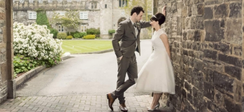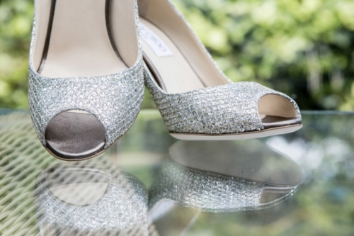 Photographer’s Comments: “I’d been looking forward to Amy & Sam’s sixties style wedding for a while, with the promise of VW campervan and car, leopard print dresses and the Beatles, what’s not to love? “The weather had been heavy down pours but we had our fingers crossed, as the beach theme would have been hard to pull off in the rain. Luckily as the cars arrived at St Marys church in Caldicot the sun appeared, Amy and her father made their way up the long sweeping lane to the church. “The day started at Amy’s parents house in Caldicot. I captured some relaxed getting ready shots with the bridesmaids and little ones. I was particularly obsessed with the silver sparkling Jimmy Choos, which I think I spent half an hour photographing on their own!!” “Sam was emotional but managed to hold it together as Amy appeared with the coolest beehive hair and short 60s dress. I love church weddings, as there is plenty of time during the ceremony to capture just the right expressions and special moments. This church in particular had the most gorgeous light pouring in through its huge windows and with friendly staff and vicar it was lovely to photograph a wedding ceremony.” “Before heading to the reception at St Pierre in Chepstow we stopped at Caldicot Castle to capture a few bridal party photographs. We used the cool VW car and camper van, but also happened upon an ice cream truck!” “This was a quick set up and unplanned, but great fun to do and well worth the effort. The bridal party queuing for ice-cream photograph became the iconic image from the wedding day and gave every one something to remember. It even stayed dry long enough to get a lovely heart shaped group shot in the court yard of St Pierre, and some family pictures in the rustic door way.” “I spent a while capturing the reception room details as they were really thought-out, from the 7inch vinyl table names to the record player cake complete with bride and groom hand knitted dolls., the room looked fantastic. The speeches were full of laughter and a few tears which lead on to an incredible evening with a Beatles tribute band.”