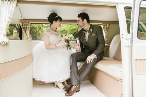Who knew that a VW van could style so well with a Leopard print wedding theme!! This wedding was held a few years back in the UK. Nonetheless, it is a wonderful wedding feature and we simply love the unique leopard theme, 60s fashion, and unique elements of the day!