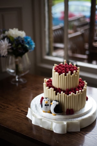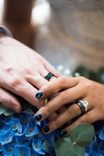 Bride’s Comments: “We played the scores to our favorite video games during the rehearsal dinner and during family portraits after the ceremony. I walked down the aisle to Vitamin String Quartet’s version of Cara Mia Addio from the video game Portal 2. Our first dance was to Vitamin String Quartet’s version of Still Alive from Portal. We loved having our favorite songs playing on our wedding day, and it was more meaningful because the songs came from games we love to play together. We also had Mr. and Mrs. Penguin cake toppers for our wedding cake, because we’ve always said we’re penguins because they mate for life.”