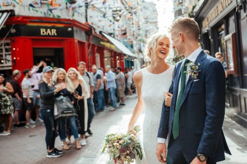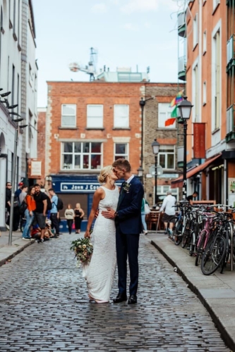 “We had a bit of time between the ceremony and the dinner at Brother Hubbard. What followed was a relaxing stroll through the streets of Dublin. Or as relaxing as it can be on a Saturday afternoon with a hurling match on! We discovered that most of the time Dublin people prefer not to draw attention with cheering or clapping but Dame Lane and the Temple Bar are the exceptions. If you want lots of love from total strangers, head there in your wedding attire.