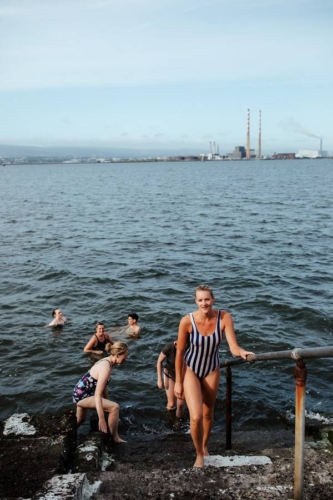 “Clare and Duncan’s awesomeness doesn’t stop there, by the way! The bridal morning was one of the most exciting I got to photograph. It started by the bathing spots in Bull Island on Dublin’s north side. Clare brought all of her family and the bridal party for a morning swim! Both Clare and Duncan are keen swimmers, it’s no wonder they decided to name their wedding tables after swimming spots around . Such a cool idea!
