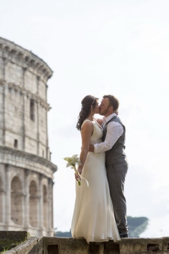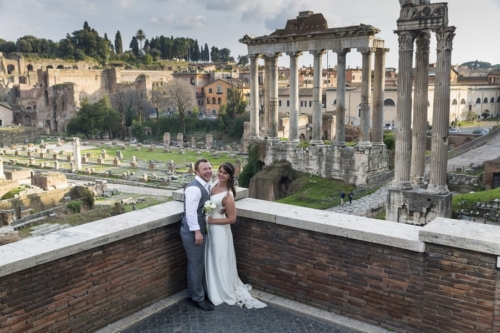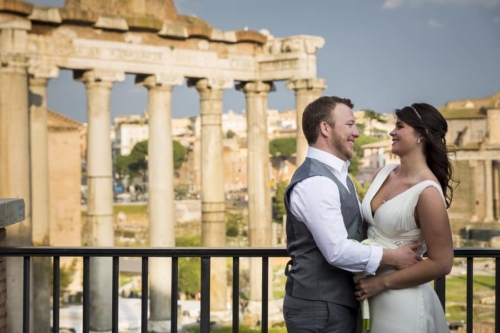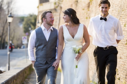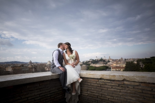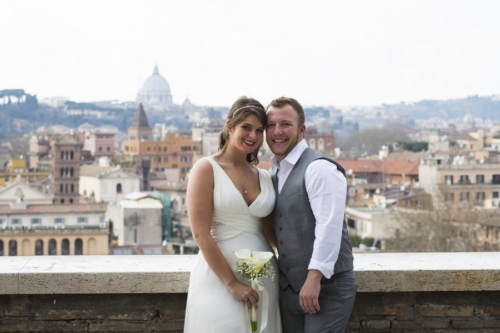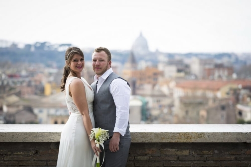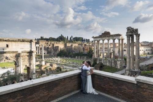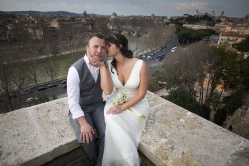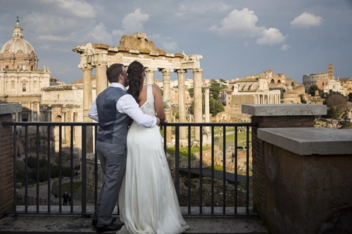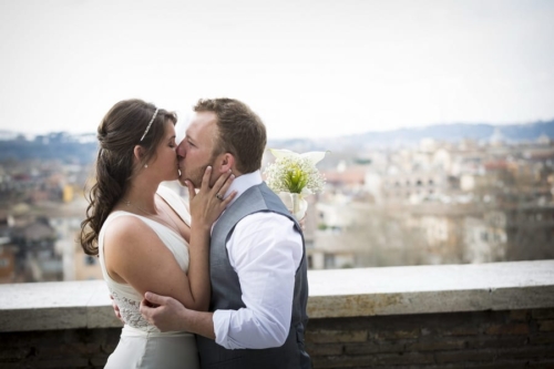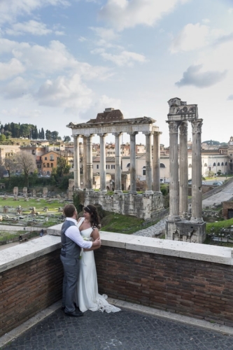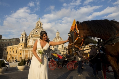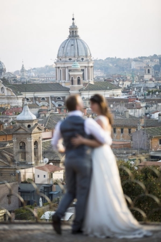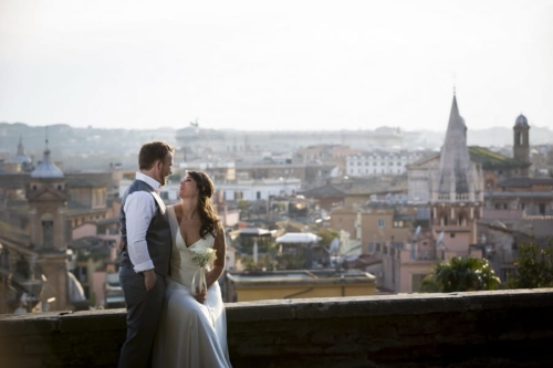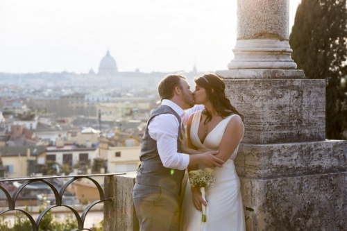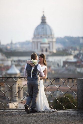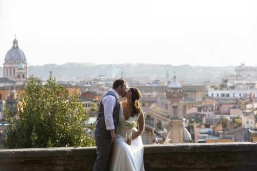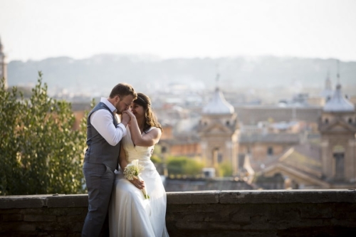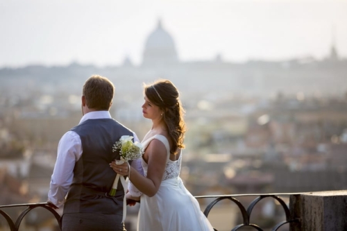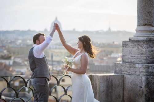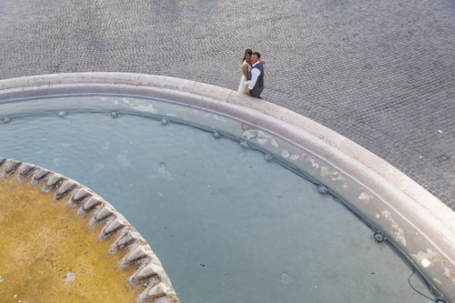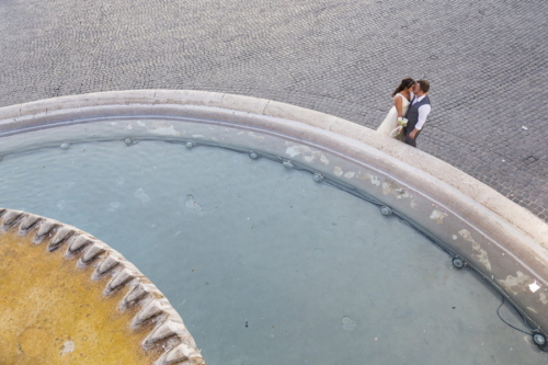 Remarks from the photographer: “This beautiful, intimate, and heartfelt wedding ceremony took place on Aventine Hill in the enchanting setting of Parco degli Aranci. Before the ceremony, we first took pictures of the beautiful bride getting ready at Hotel Impero. “After the ceremony, I captured the bride and groom up on the marble terrace overlooking the city of Rome. From there we continued onto the Roman Colosseum and Roman Forum, where we captured some spectacular photos with ancient Rome as the backdrop. “Pincian Hill was our second to last stop that lead us the opportunity to capture some stunning imagery with the sweeping view over Roman rooftops. “The photo session ended down at Piazza del Popolo, with one last snapshot taken by the water fountain from above.”