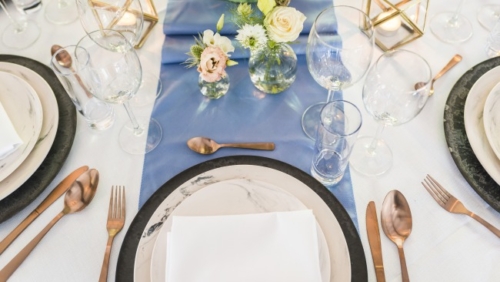 A beautiful styled wedding shoot at Kasteel Maurick in the Netherlands. Love the famous castle setting as well as all the blue and copper toned details that work so well together!