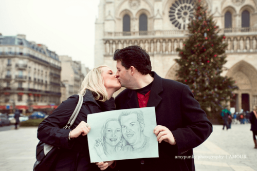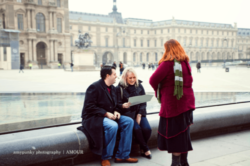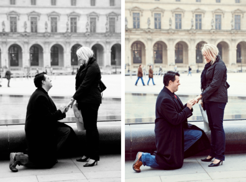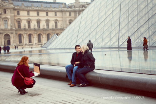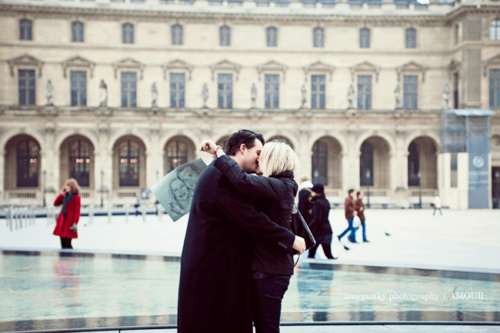 To set the mood for Valentine’s Day we are posting this amazing surprise proposal that was photographed by Emilie from AmyPunky Photography in Paris. Here it is in Emilie’s words:”I was contacted by Court two weeks ago. He’s from Texas and he wanted me to shoot his proposal to his girlfriend, Stephanie. But he had a very specific idea of how he was going to propose: he wanted to set up a secret photo shoot, and a random meeting with an artist who would offer to draw them a portrait. “Then, when the artist would show them the portrait, his girlfriend would discover a ring drawn on her hand and would understand what was going on. “So, I found an artist and I organized the photo session and the meeting. When the day of the photo session arrived, I was so stressed and anxious. I didn’t want anything to go wrong and I didn’t want to ruin his proposal. “Everything was okay: the artist showed up, the couple arrived at the Louvre Pyramid, and we started our secret photo session. I felt like a paparazzi!” “Stephanie discovered the drawing and when she saw the ring drawn on her hand, she said: ‘Hey, are you kidding me?’ Then, Court proposed… it was such a beautiful moment to capture, especially in Paris, in front of the Pyramid of Louvre.” What a romantic story and gorgeous photography! Thanks for sharing Emilie–we’ve been excited for this post ever since you sent us the images!Gallery