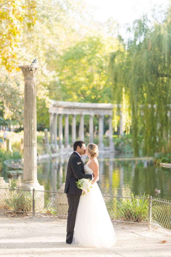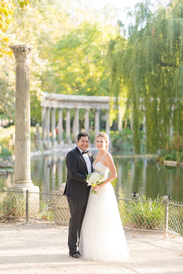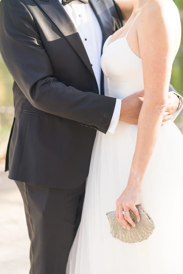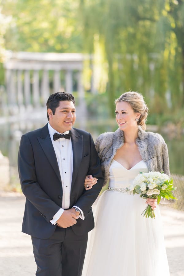 Our style vision was: Classic! My dress and fur were inspired by my mother’s dress when she married my dad back in 1979. I found my dress at the first boutique I went to in LA! It made me feel like a bride. I wanted something relatively simple since I would be getting dressed alone, and could not have a train and bustle due to the park location. I used the handbag my mother had on her wedding day, and our dresses and jackets were so similar. My engagement ring used to belong to Antonio’s mother, so we had a little bit of each of them with us that day.