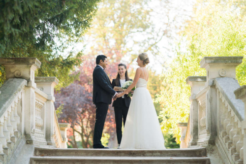 The ceremony was so beautiful, especially exchanging our own privately written vows. It was special to have this private moment when Laura stepped away so we could be completely together. After the ceremony, we stayed in our outfits as long as we could until check out time and drank Champagne in our beautiful hotel suite! We didn’t want it to end.