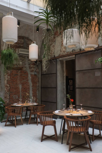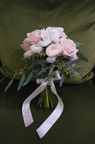 “They packed light & picked up a bouquet from a local florist who shares the space with a restaurant & shop, where Maria & Ryan later had their intimate Italian dinner reception.