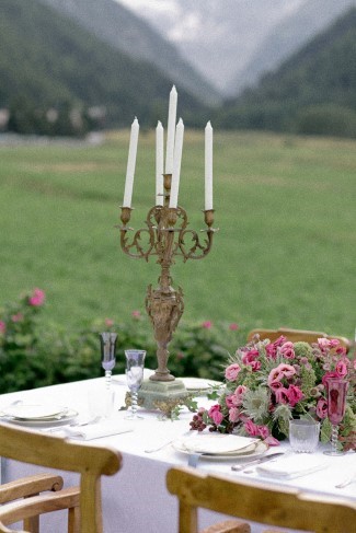 We always love seeing unique outdoor wedding ensembles. How can you beat an elegantly styled table with a mountain backdrop? I am sure the photos below do not do the scene justice, as I can imagine the fresh mountain air and tranquil environment.
