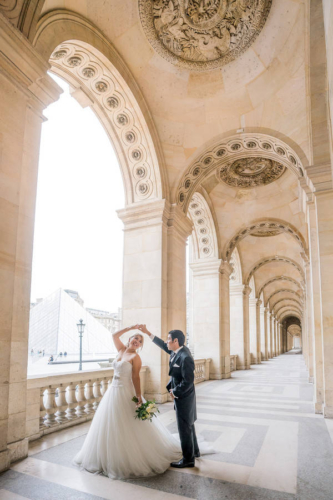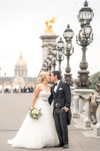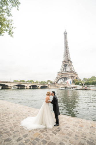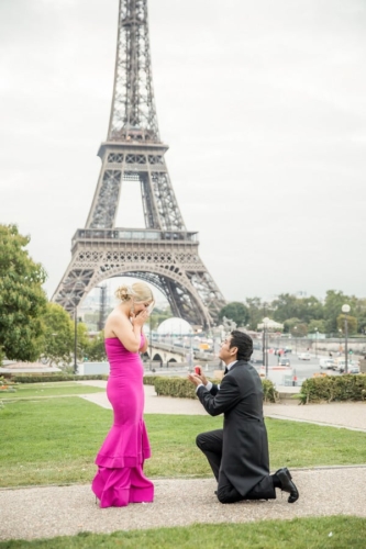 So I met the couple in the morning at the Eiffel Tower. As Teresa knew that they would be having a photo shoot, she was dressed in a long evening gown and had her makeup and hair done – so she was ready for everything that was about to happen and be captured on their Paris photos.