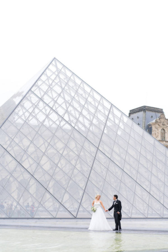After the ceremony we went to Alexander III bridge and the Louvre to take more wedding photos of the newly weds. At the Louvre the last surprise was waiting for Teresa: A Paris themed wedding cake, that she loved.