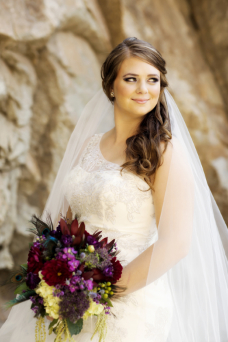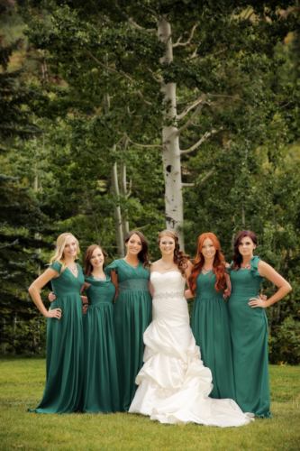 “When I thought of what I wanted to look like on my wedding day I wanted it to be timeless, not trendy. I simply just wanted to feel beautiful. For the bridal photos I chose a Galina signature from David’s Bridal and for my wedding ceremony gown I bought a gown from La Sposa Bridal salon. “It is actually a funny story how I acquired my wedding gown. I was visiting my mom in Utah when I found my dress.  We were out at a local consignment shop selling all my old prom dresses, when the subject of marriage came up with the owner.  The owner proceeded to look at me and said, “I might have something you will like,” and brought out the dress. It was brand new with tags and I decided to buy it (even thought I wasn’t sure) because I knew that I could resell it for more than the listed price.  As months passed, the dress grew on me and I am so glad that I found it. It was perfect and I felt so beautiful in it. It was meant to be. I wore Michael Kors flats that Jackson had bought for me for a Christmas present. “For my bridesmaids dresses, we bought them from Light in the Box. I was skeptical about this website at first because the dresses were coming from China, but they were absolutely beautiful and very well made.”