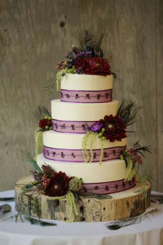 “It was a  simple white 4-tier butter cream cake.  I wanted the flowers to be the main embellishment.”