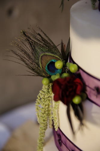“One day my cousin and I went into a bakery and saw a cake with a peacock on it, I loved the way the colors looked, ever since that day I knew I was going to do a peacock themed wedding. We decided to go with jewel tones and darker colors, which brought a very romantic feel to the wedding.”