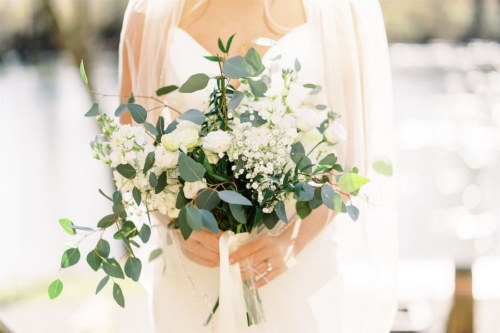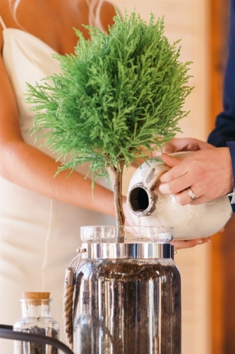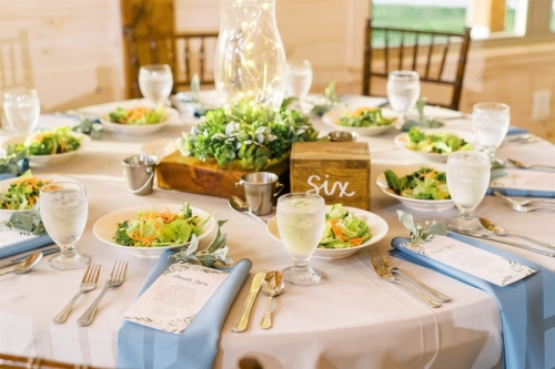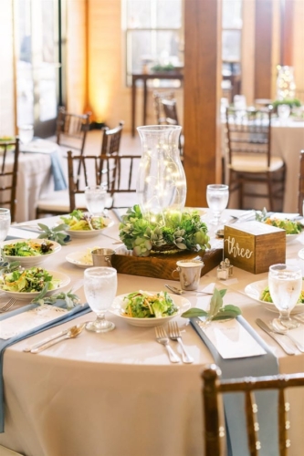 “The style was elegant with colors of white, icy blue, greenery, and accents of gold. It was very important for them to incorporate the prime meaning of becoming one with Christ, so they incorporated a tree ceremony into their marriage ceremony.