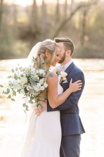 Q1: Tell us about your wedding! “There was not any particular theme that I had in mind, but there was elements that I loved that I wanted to bring together. The style was elegant with colors of white, icy blue, greenery, and accents of gold. It was very important for my husband and I to incorporate the prime meaning of us becoming one with Christ, so we incorporated a tree ceremony that turned out beautifully.” Q2: Let’s talk wedding decor “I hired Donna, from Receptions by Design. She took all of my decor pieces that I had picked out from various of places and decorated our venue. We decorated the ceremony and the reception, but really did not have to do much because Hiwassee River Wedding venue is already beautiful as-is.” Q3: What were the florals like in your wedding? “Yes, greenery and florals were a big part of the style of my wedding. We had greenery and floral on every table during the reception. During the ceremony we had greenery and floral on our arbor as well. Our colors remained simple, white and green in the floral but the simple colors emphasized the venues natural beauty.” Q4: Did you personalize the day in any way? “Yes, we had Somersault String Ensemble which is a string quartet. They played specific songs at specific times during our wedding, to give it a personal and intimate touch. We also had an amazing entertainer, The Million Dolla Man.” Q5: Let’s talk fashion “I have always loved elegance, so I new that I wanted to look elegant and feel beautiful on my wedding day. My husband left all of the fashion up to me so I knew he would always look great in blue, so that is why I choose to put him in an indigo blue suit. “With the elegant style, we chose to incorporate rose gold elements in my earrings and my actual wedding ring, while also having elements dispersed through the wedding decor.” Q6: How did you meet? “We meet in high school, yes we are high school sweethearts. He proposed at The Barn At Drewia Hill in April. It was absolutely beautiful with a dinner just for the two of us and it totally caught me by surprise!” Q7: What was the most anticipated or special moment of your wedding day? “The most special moment of my day was walking down the aisle and the officiant saying “you are now husband and wife.” At that point you realize that it is official and most of the nerves are gone for that day!” Q8: Do you have any wedding planning or marriage advice that you’d like to share with other couples planning their day? “Yes! I high recommend hiring a coordinator and an awesome photographer for the wedding. It makes things so much easier on everyone the day of the wedding for someone else to take care of all of the decorating and planned essentials. I believe that photos are very important for a wedding, the photos are what gets pasted down through generations, you want them to be beautiful. “I believe what made our wedding so great was the experience. The experience was one like no other, so I encourage other brides and grooms to make their wedding day a true one time experience they will never forget. A big part of the great experience is a huge thanks to our vendors, Bill from Hiwassee River Weddings, Nelya Photography, Impressions Catering, Receptions by Design by Donna, Somersault String Ensemble, and The Million Dollar Man.”Gallery
