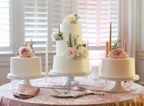 Alicia and Gary’s big day was nothing short of a fairytale. Soft and romantic is the perfect way to describe this couples wedding. Surrounded by friends and family, this fun loving couple tied the knot in front of a lush floral arch at a Southern country club venue. Blush pink, greenery, and touches of crisp white florals helped create a simple, but elegant ceremony. The reception to follow was both classy and sophisticated in nature. Ivory table cloths only enhanced the beautiful floral centerpieces luninated by candle-light, and touches of dazzling silver. The cake table held three frosted white cakes adorned with roses and greenery, a top a blush velvet linen. From the lovely live music, to the elegant and romantic ambiance, this couples big day put everyone in a dazzling romantic mood.This night was a blush pink dream that one never wantedto end.