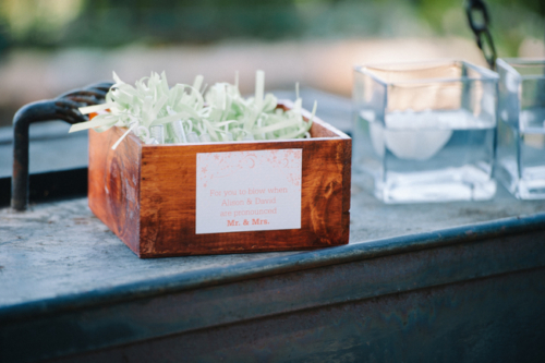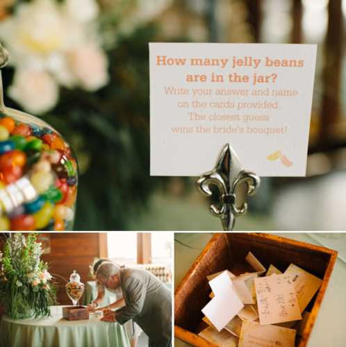 Alison didn’t want a traditional bouquet toss, so Hannah and Tria brainstormed different ways for her to give away her bouquet. We love the “guess how many jellybeans in the jar” game they came up with!