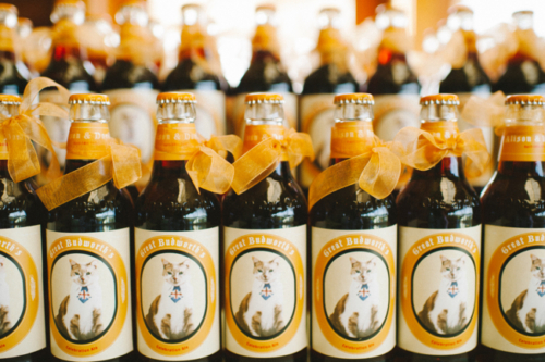 Alison and David’s cat, Buddy, is a very important part of their life, but unfortunately cats don’t make the best wedding guests. So instead of having him there in person (or in cat), they brought him there in print. It started with the party favors: English Newcastle Brown Ale, dubbed “Great Budworth’s Celebration Ale”. Buddy graced the custom labels in a very posh Union Jack tie. He was also incorporated into the wedding stationery and was even included in their darling cake topper!