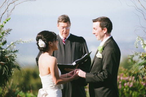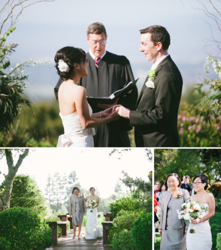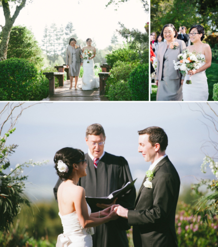 If anyone is trying to put together a beautiful wedding in a short amount of time, here’s proof it can definitely be done! Alison and David’s wedding at Thomas Fogarty Winery was planned in three months. Alison wanted nothing to do with a conventional wedding; David is from England and loves tradition. The perfect compromise was a simple and elegant wedding full of meaningful, fun, and whimsical details! Thanks to Hannah and Tria of Honey & Twine Weddings and Events for sending this lovely wedding our way.