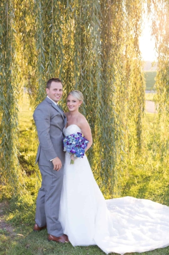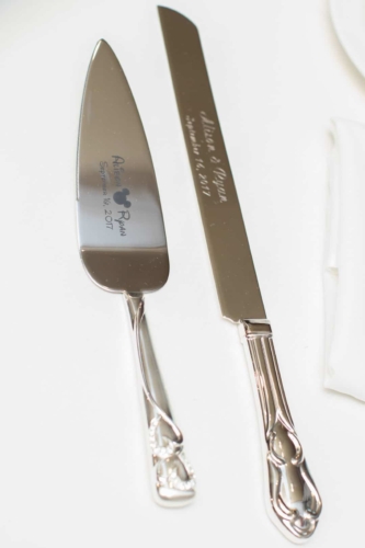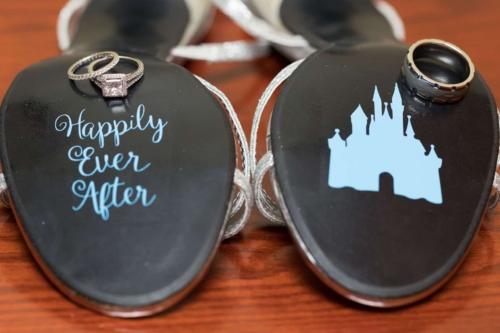 They were married under a beautiful pergola with all her family and friends watching. Alison looked absolutely stunning in a dress from Catherine’s Bridal (Cinderella by Alfred Angelo). Alison’s flowers were gorgeous blue hydrangeas with other pretty blue flowers with crystal Mickey Mouse heads place all around her bouquet. Kristina Lynn Floral did an amazing job!!