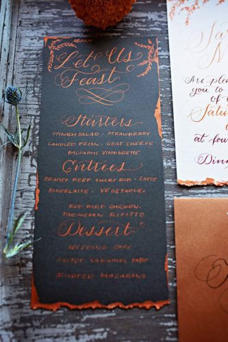 “The color palette consisted of various golds, black and beautiful orange Fall tones. “