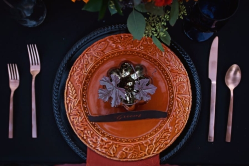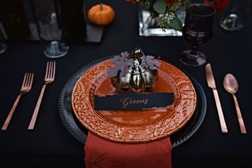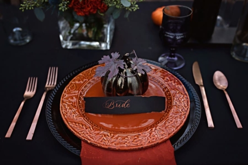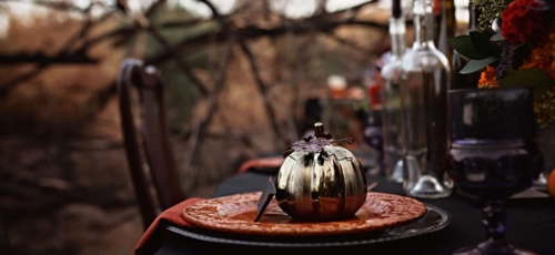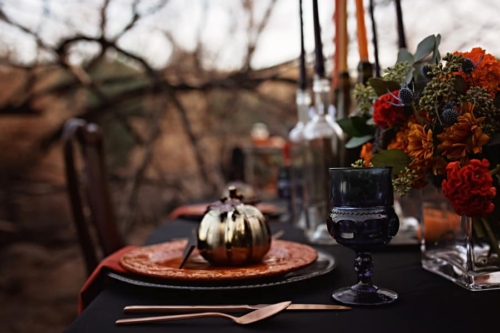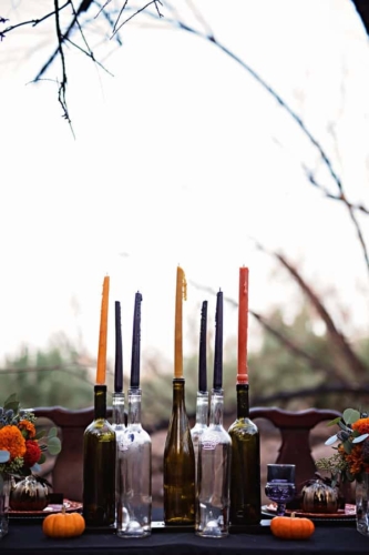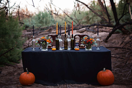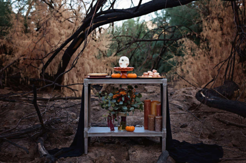 What an amazing color palette and outdoor styling setting. A true styled Halloween masterpiece.