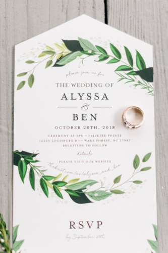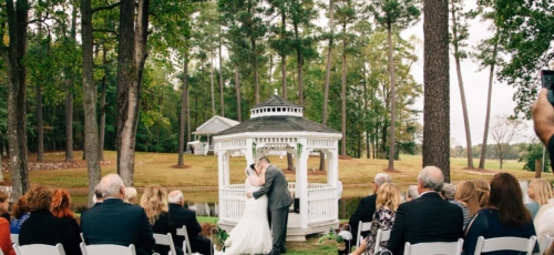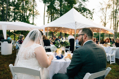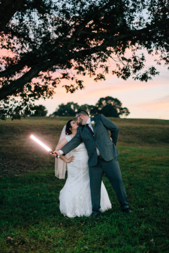 Photographer’s Comments: “Ben & Alyssa had the perfect intimate backyard wedding. Ben has a close family friend with a gorgeous bit of wooded land in that they chose as their backdrop. It is absolutely stunning! “Under the huge old oaks in front of a pond they exchanged vows with their closest friends and family surrounding them. Alyssa DIY’d all the flowers and decor for their wedding and kept it simple, beautiful, and budget friendly. They are both huge Star Wars fans so they made sure to have a few references sprinkled throughout the day. They danced the night away under the twinkle lights and stars.”Gallery