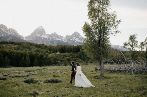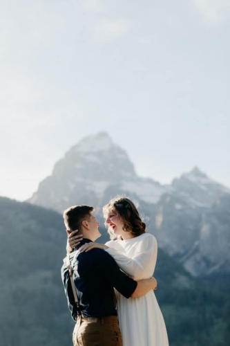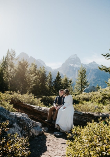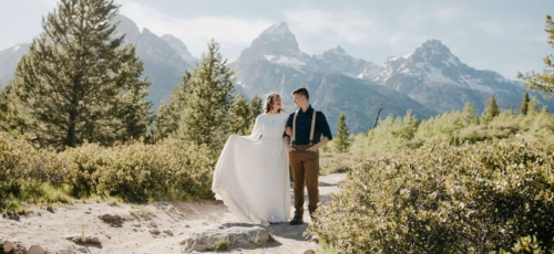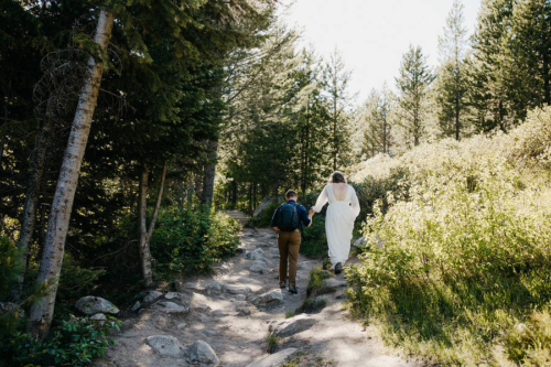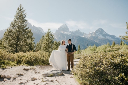 As little girls we dream of being princesses, as teens we realize that dream isn’t attainable, so we hope for our own prince charming. I never quite dreamt of waltzing around a giant castle in a dress, even as a child, but I did find my prince charming! And we spent the beginning of our happily ever after in a magical place. The Grand Tetons provided their own magic on our special day, with a combination of glowing sunlight, flowing waterways, and fields of flowers. I’ve always known it’s not the place, but the people you’re there with and it’s no less true for our wedding day. As introverts, Ashton and I didn’t want the attention of the day to be on us, but rather a shared moment between the two of us. So with the officiate, the photographers, and the bride and groom, we set out on a hike that would change our lives. I had thought the hike there would be strenuous and exhausting, especially in a heavy dress, but there was nothing but peace. The quiet of the mountains coupled with the low voices of the small group of us chatting was nothing but tranquil. People continue to ask me if I regret not having a wedding or even having anyone there, and the answer is and will continue to be ‘no’. I wouldn’t change the way our day connected us better to each other and to the place we chose. Those mountains will always mean something to us now, each peak set into my mind clearly as the day we hiked there, and we can hardly wait to go back.