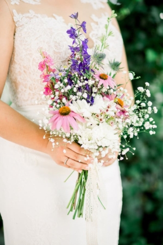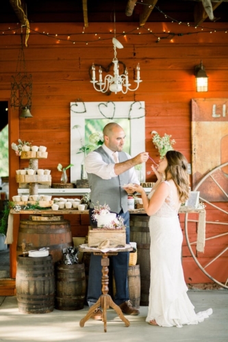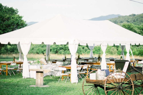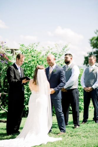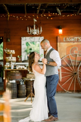 Q: Tell us about your wedding! “Originally I did not want a wedding. My original plan was to sign papers and then throw a party later on down the road to celebrate. Our families are located all over the east coast and I did not see how it would be feasible to have a wedding where everyone would be able to attend. My family mainly lives in the northeast and Casey’s family is located mostly in South Carolina with the exception of his parents. We knew right away we did not want a Charleston wedding (where we live), but wanted to have a low key fun wedding where everyone could relax hence Meredith Valley Farm. We were able to get the best of both worlds, we threw a great party and our families were able to attend because it was centrally located. Q: Let’s talk wedding decor “The entire wedding was essentially mix and match. Vera, of Meredith Valley Farm helped utilize the decor she had on the farm and put it all together to create a beautiful space. The farm was naturally beautiful and did not need much at all to transform it into a wedding venue.” Q: What were the florals like in your wedding? “We decided to use wild flowers for the wedding bouquets and the arbor, and babies breath for the center pieces. The groom and groomsmen had greenery for their boutonnieres. Casey was very anti-boutonniers so we settled on something more subtle. “The one element that we decided the wedding did not need much of was flowers. The venue was naturally beautiful and has many different flowers around the farm. I wanted to highlight its natural beauty rather than bring in more flowers than needed. The flowers that were displayed around the cake, dance floor, and farm house were all handpicked from the farm.” Q: Did you personalize the day in any way? “We really wanted a DJ that would help keep the party going and get the guest to interact. Boy did we get that! One of my favorite parts of the day was watching our families get to know each other while dancing their butts off on the dance floor.” Q: Let’s talk fashion “I had not a clue what I wanted for a wedding dress. I walked into a bridal salon, tried on a dress and that was it. First dress- first shop. The dress I tried on had all the elements I wanted- straps, light weight, and was super comfortable. Casey wanted to wear a suite for his attire. Being at a farm I was expecting him to want something more comfortable and casual, but he surprised me with picking out a vest and a jacket.” Q: How did you meet? “Casey and I met through mutual friends. They set us up on a blind date. Casey invited me out to a very nice restaurant where we ordered appetizers and had a drink each and sat and talked for 5 hours- time flew by. Through out the evening Casey kept encouraging me to get an entree, I wasn’t hungry at all and frankly was having a great time and didn’t want to eat more. Turns out he was still starving and wanted to eat himself. After we left at 11 p.m the poor guy had to go to taco bell and get himself dinner… He still invited me out for a second date after that! Knowing how close I am to my grandparents Casey waited until they came to Charleston to visit to propose. He asked for my sister’s help to get me to the beach. They lied and told me we would be doing family photos. When I got to the beach they were supposed to be meeting us there, but were “running late.” He proposed to me on the beach and then had both of our families waiting for us at our favorite restaurant. It was the picture perfect proposal. Q: What was the most anticipated or special moment of your wedding day? “The moment I was waiting for most was being able to see Casey for the first time that day. It was so hard to stay away and not talk to him. Seeing him as turned the corner to walk down the aisle took all my nerves and pre-wedding jitters away. Hearing us be pronounced husband and wife was an indescribable feeling. When I asked Casey what his most anticipated moment of the wedding day was he said, ‘seeing you walk down the aisle, cliché answer I know, but it is true.’” Q: Do you have any wedding planning or marriage advice that you’d like to share with other couples planning their day? “Yes! Right after you are married take a minute alone. Your wedding day will fly by and you will be spending time with everyone the entire evening take a minute or two to yourself before you join the party. “Casey and I snuck into the farm house right after we said “I do,” and took a moment to let it sink in that we were truly married. Being able to have that minute of privacy to reflect was priceless. Casey’s advice is to take a minute during the festivities to step back and take it all in. “Everyone that comes to the wedding is there for you. They love you and are so happy for you- and are having fun because of you. Enjoy it! “While planning the wedding don’t get hung up on the small things. They don’t matter I promise. When the big day comes you won’t even realize that the cupcakes aren’t set up where you wanted them, the wrong song played at the entrance, or the bows on the chairs aren’t tied just right. What will matter at the end of the day is you and your other half. “The night will fly by and it will leave you wanting more time together. Appreciate the big things, don’t get hung up on the small things.”Gallery