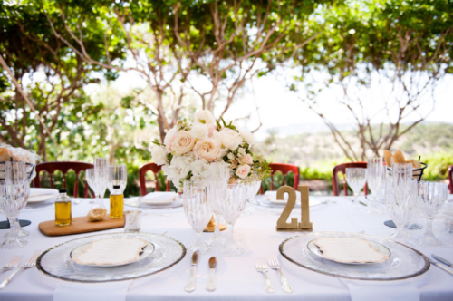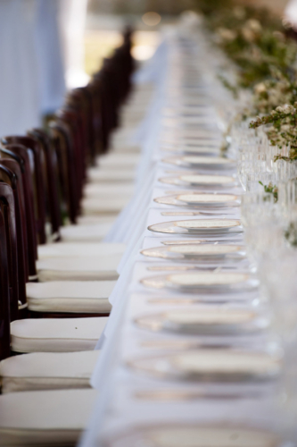 Amanda and Ryan were long distance sweethearts for four years before getting engaged. As an ode to their long distance relationship, they incorporated a single long dinner table under a beautifully decorated tent, with travel decor touches. You can tell from the beautiful photography below that this wedding at Villa Del Largo Events Pavilion is elegant and rich looking. At the same time, the couple managed to make the joyous occasion fun and relaxed for guests.