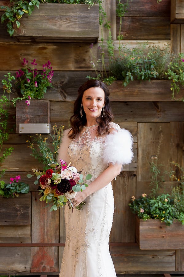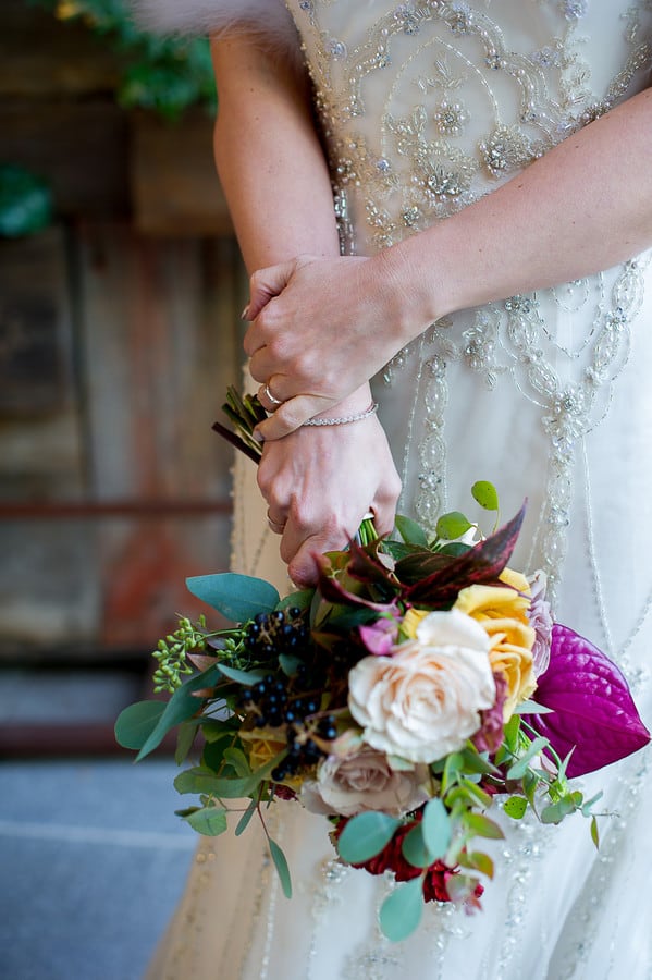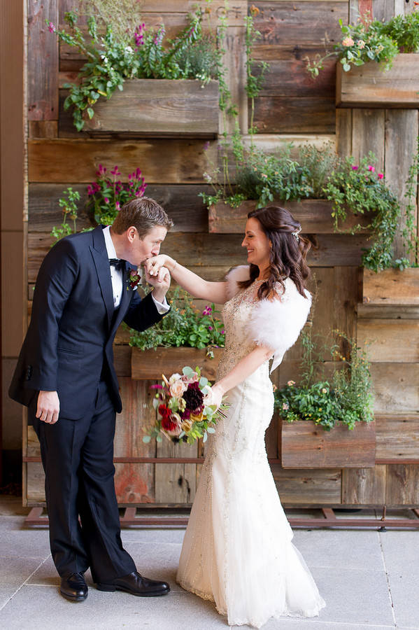 Q: Tell us about your wedding! “We hoped to throw a lively, joyous party to kick off Halloween weekend in Brooklyn and properly welcome our (many!) loved ones who traveled from as far away as London and Brazil to make the day that much more special. Q: Let’s talk wedding decor “Prospect Park already looks pretty fancy in the fall, so we didn’t need a thing for the ceremony. For the reception, we aimed for spooky chic, which our florists (Buds of Brooklyn) and lighting team (Bentley Meeker) expertly delivered. From the beginning of the design process, it was clear how skilled they were. Just for fun, we pitched in some painted, glittered, and studded pumpkins a few lovely friends helped us decorate the week before. Q: What were the florals like in your wedding? “Our favorite spot was the fireplace mantle, which Buds of Brooklyn decorated with black candles and these incredible centerpieces with red and purple tendrils hanging from bursts of greenery and flowers. A dear friend of mine contributed homemade apothecary bottles from her bad-ass Etsy store, Deadnettle Apothecary, to add a touch of macabre. I also loved my bouquet, which dried beautifully and now sits on a ledge in our kitchen. I’m not usually one to display dead flowers, but it still looks so pretty!” Q: Did you personalize the day in any way? “We had a lot of fun planning our ceremony, which was officiated by one of our closest friends, Anna. We walked down the aisle together as our spectacular band (45 Riots) played the Ground Theme from Super Mario Bros., and our sisters read Neil Gaiman’s “The Day the Saucers Came” and Joyce Sidman’s “Come, Happiness” before we exchanged vows. For the recessional, the band played the Overworld Theme from The Legend of Zelda. Throughout our planning process, we kept thinking of our wedding as the beginning of a great adventure together, which was very much reflected in our ceremony.” Q: Let’s talk fashion “I had no idea what I was doing, as I’d never before envisioned myself in a wedding dress. After visiting only one other store, I went with my mom to The White Room in Murfreesboro, Tennessee, and picked the dress we both liked best. I had intense buyer’s remorse that afternoon—too much pressure!—but ultimately loved it once I took it to The Wedding Dresser. Susan and her team are gentle geniuses. They’re dress therapists.Laura Burns did my hair and makeup. She’s a beauty wizard and has a fantastic sense of humor! It was a joy to spend time with her as she worked her magic.Mike went for a traditional tuxedo, custom-made by the talented tailors at Kozinn+Sons.” Q: How did you meet? “Our officiant, Anna, introduced us back in 2006. At the time, I was in a long-term relationship and lived on Long Island, and Mike was working and dating in the city. We’d hang out together with a group of friends every six months or so when Anna flew in from California, and then there were a few years when our paths didn’t cross. In 2013, Anna moved back to NYC and invited us both to join a group for drinks. I was sitting at the bar eating a pretzel when Mike walked in, and as he approached I spilled mustard down the front of my shirt. Mike loves mustard, he says.After Mike and I decided we wanted to get married, he surprised me with a trip to Hudson to see Rufus Wainwright at the Hudson Basilica. We got engaged on a hill overlooking the Hudson River after he gave the loveliest proposal speech, which I was way too excited to hear at the time. Later he emailed me the transcript, which I’m especially thankful for.” Q: What was the most anticipated or special moment of your wedding day? “Before we went upstairs for the processional, we hung out and drank whisky alone in the bridal suite (which was really a cool storage room to hold materials for the Picnic House’s nature programs). Having learned during Mike’s proposal that it’s hard to listen closely when one is so excited, we read our vows to one another so we could enjoy them better during the ceremony. That was the most memorable moment for both of us.Back in the room after the ceremony, our talented caterer (Raging Skillet) sent down a sampler of delicious appetizers, which we devoured before going back upstairs.We loved the dance party, too. Our band (45 Riots) was perfect. Our friends are still talking about them. Q: Do you have any wedding planning or marriage advice that you’d like to share with other couples planning their day? “Amber: Plan it together and split the work equally. You’ll bicker here and there, but ultimately it’ll be something special you created together.Mike: Spring for a day-of wedding coordinator so you’ll be able to enjoy yourselves after months of hard work. We recommend Two Kindred Event Planners! Allison Szleifer was a godsend!”Gallery