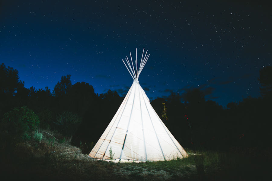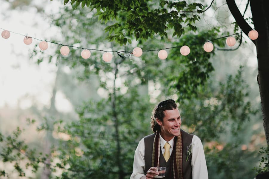 Tom and Angie’s California outdoor wedding began with 7 am yoga on one of the cabin’s accessible rooftops and ended with a dance party that lasted til 4 am — with a midnight pizza energy boost!