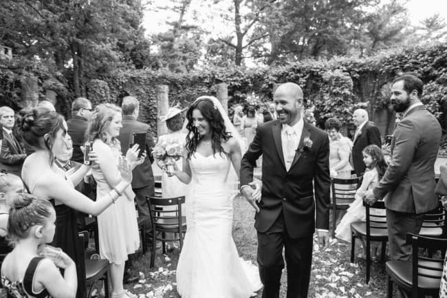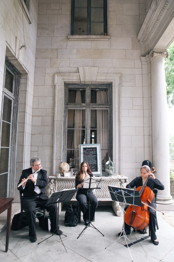 “This was something that we choose again, to match the ambiance of our venue. We had a String group called City Wind Trio, who we felt would complement the style of wedding perfectly, and they did. Our wedding ceremony was held in the garden, and as guests arrived, they were greeted with fresh lemonade, and as they waited for the ceremony to begin, City Wind Trio played an array of classical music for their entertainment. As the wedding party entered Jesu, Joy Bach Bridal March , and I walked up they isle to Canon by Pachabel. The recessional song we choose was Wedding March by Mendelssohn. We opted to have City Wind Trio continue throughout our cocktail hour, as we felt they were an important part of creating the feeling of being brought back in time. We received many compliments for them.”
