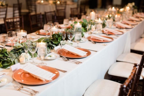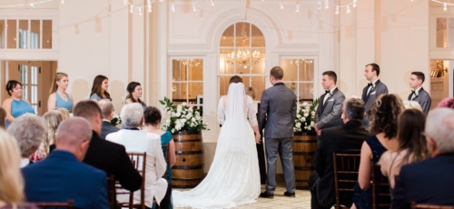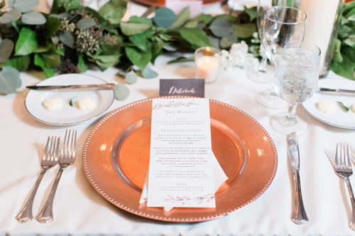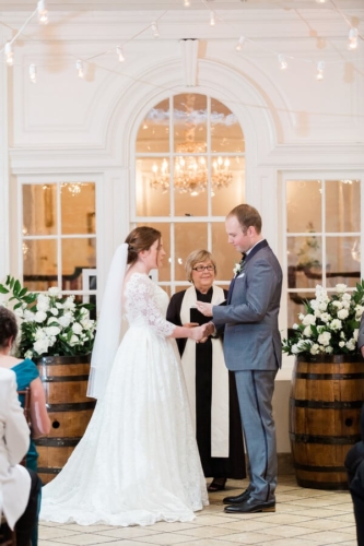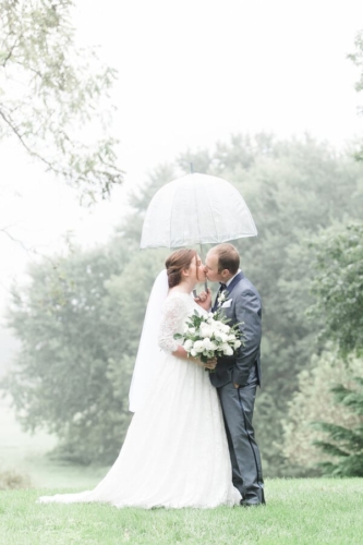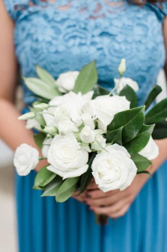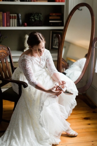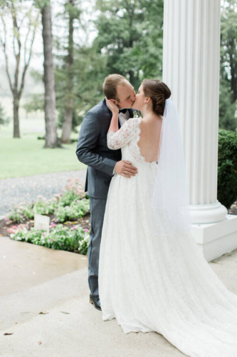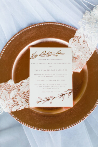 Photographer’s Comments: How They Met “The two met when Annie was studying to become a Paramedic. She was doing clinical rotations with the City of Pittsburgh Paramedics and Fred already was a Paramedic for the city. She remembers well the day they met, Fred was working overtime and was super sleepy but still wanted to help her study. Fred gave her his cellphone with a paramedic study guide app and let her study while he rested. “After that day, Annie remembers thinking that he was cute, but she didn’t think much of it. The next day, she added him on Facebook and they started talking, which led to drinks, dinner, lots and lots of dates, and the rest is history! The Ring “Annie’s ring is super special to her. It’s from a company called Brilliant Earth that specializes in ethically sourced jewelry, which was really important to her. Brilliant Earth does a lot to give back to the communities from which they source their diamonds, including donating some of their profits and supporting education, healthcare, etc. They also use recycled precious metals. Annie found out about this company through a friend and when she told Fred about it he was really interested as well. She had a lot of input when it came to picking a ring, we visited Brilliant Earth showrooms in Boston (near Annie’s hometown) and DC (near Fred’s hometown), but in the end the exact ring was surprise to her and totally Fred’s pick. The Proposal “Fred proposed one night, just before dinner standing on a sand dune overlooking the ocean in the Outer Banks. What makes their proposal story special is that it actually lasted over multiple days. “In June 2017, Fred planned a trip for them to stay at the Sanderling Resort in Duck, North Carolina. He’d been there before, but she never had. They had been on small vacations with friends before, but this was the first big trip they had taken just the two of them. “Once they got to the Outer Banks, Fred and Annie spent the weekend pampering themselves and enjoying their time away just the two of them. Annie had a feeling that he might propose on the trip, but she had no idea when. “Fred proposed on the second to last night there. He told her after that he had nerves for a lot of the trip trying to decide the perfect time to propose and keeping the ring hidden in the hotel room. The Wedding “Fred and Annie both really wanted a classic wedding that they could look back on in 60 years and still love. They jumped back and forth about where they would get married, she grew up by the ocean in Maine and Fred in Northern VA. “When they decided on a wedding in Virginia, she knew she still wanted to incorporate a Maine and ocean feel to get the best of both worlds. “Annie also loves greenery, the outdoors, and nature, so she wanted aspects of that as well. Annie has always loved rose gold and her engagement ring is rose gold, so they built on our colors from there. “The couple ended up with dusty pale blues and lots of dark green and greenery with rose gold accents which they thought was classic and reminded her of home, the ocean, and the beach. From the bride “It rained on our wedding day. At first, I was devastated because I had always wanted an outdoor wedding. But one of the big things that attracted us to Whitehall was that they had a great rain plan. “We also had time for photos when it wasn’t raining. Even though I was upset about the rain at first, embraced it, and it worked out so well. The bottom of my dress got muddy, and my hair was damp, but we had so much fun and that’s what mattered. There is this swing in the front yard of Whitehall that I had really wanted to take pictures on, and Fred carried me over the mud into the swing so could get those photos, which is a memory I’ll definitely never forget.”Gallery