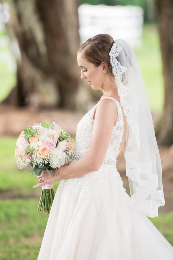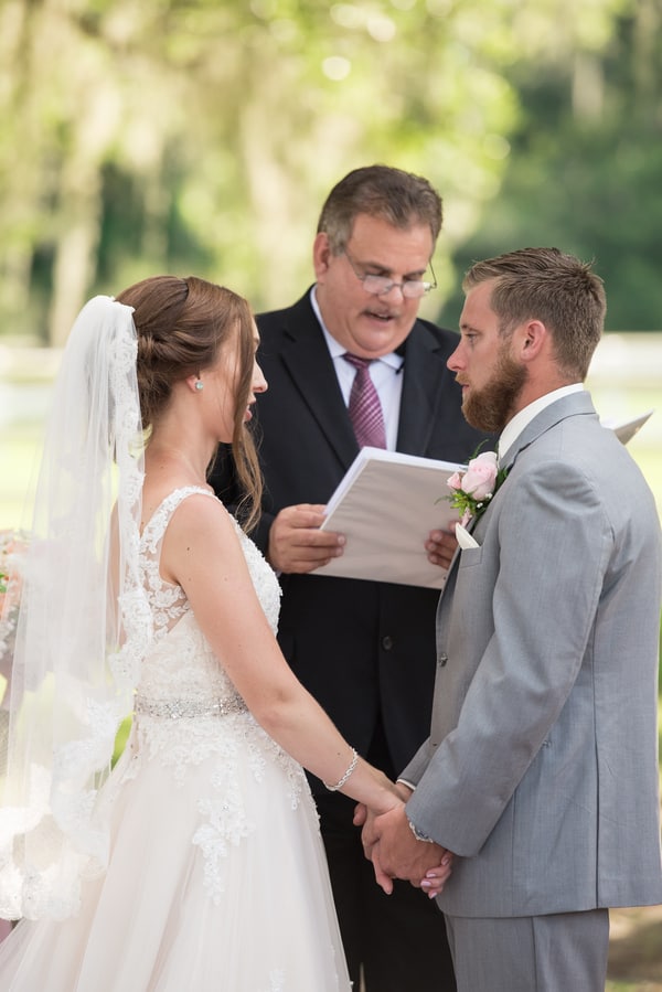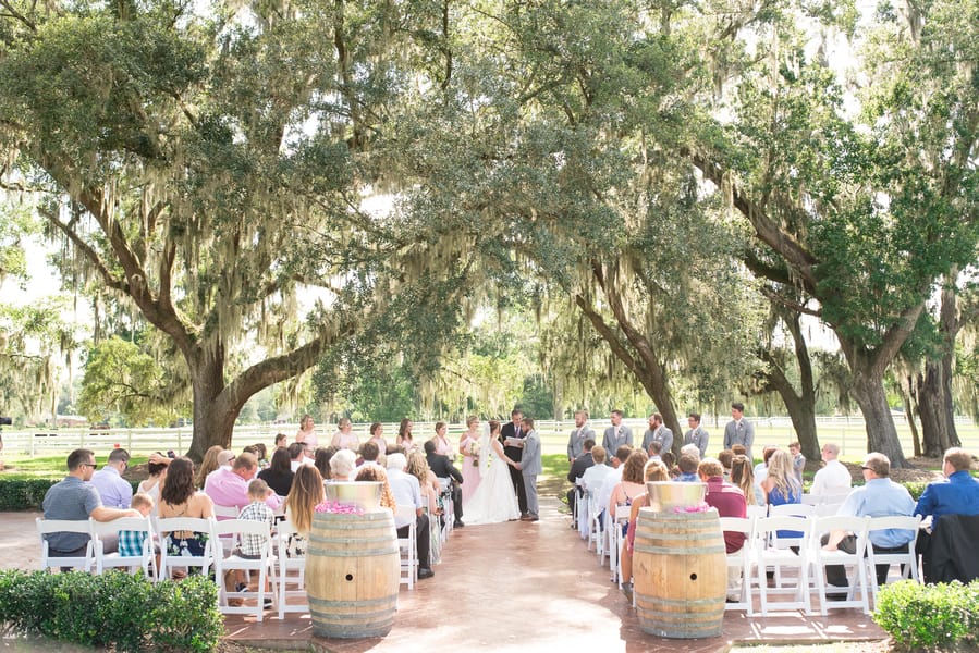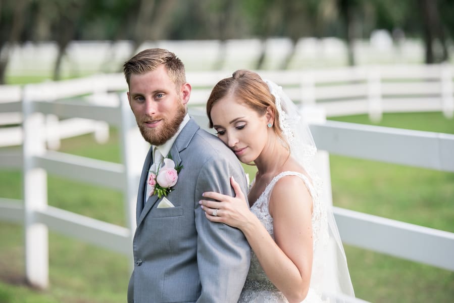 Photographer’s Comments: “Ashley and Brandon tied the knot during their elegant and rustic chic wedding at Plantation Oaks Farms in Callahan, Florida. The two envisioned a day filled with the love of their family and friends as they tied the knot outside under a 50 year old oak tree and partied the night away in an elegant indoor barn ballroom. “My sweethearts story began through being introduced by a mutual friend. At the time, Ashley’s best friend from high school had joined the Navy and was stationed at the same base as Brandon. Introducing Ashley to Brandon, the two began chatting over the phone and on Skype before deciding to meet up in Florida. Their first official face to face introduction wasn’t until a month later when Ashley flew up to Maryland and Brandon picked her up from the airport. I can’t imagine how nerve-racking it must have been to finally meet, but also the excitement that went along with it! “Brandon fell in love with Ashley’s dedication to how hard of a worker she is and how much she cares for their relationship and little family of two puppies. Ashley fell in love with Brandon’s positivity and how he can bring light to any situation. From online to an in-person relationship, they realized they had found true love and Brandon was ready to ‘pop the question.’ “During a trip up to New York during the week of Thanksgiving, Brandon brought Ashley to see Central Park. While walking around, hand in hand, Brandon pulled Ashley close when they came to a stunning view on a huge rock overlooking the lake with beautiful trees surrounding them in the colors of Fall. Dropping to one knee, Brandon asked for Ashley’s hand in marriage and of course she said, “yes!” “Fast forward to their wedding day, the two created an intimate wedding incorporating beautiful Florida elements from an age old oak tree to a wooden planked barn, along with a color scheme of pink and grey. “Arriving at the venue, we found Brandon and his groomsmen checking out the farm animals while Ashley and her girls were getting dolled up. I must say that stepping into the bridal suite of what looked like a smaller barn on the outside and finding a five star grey interior, leather white chairs, and multiple makeup placements was jaw dropping. Ashley and her girls looked as gorgeous as ever and after capturing them getting ready and into her dress, we headed over to our groom for a fun few shots of playing pool in the groom’s suite. “Ashley’s grandpa was my sidekick for the day, as we helped him with where to stand to get the best shots for filming his granddaughter’s wedding. Walking down the aisle, Ashley brought tears to everyone’s eyes including Brandon. Their ceremony was heartfelt and sentimental, and followed by family and wedding party portraits before we headed off to explore the nearby surrounding shaded areas for newlyweds portraits. “Back inside the rustic barn turned ballroom, we captured reception entrances, first dances, and tearful toasts. Our night ended with a super silly and adorable bubble send off as the two headed home as officially Mr. and Mrs. “Wishing our darlings and incredible life together with their two little pups and more more adventures to come!”